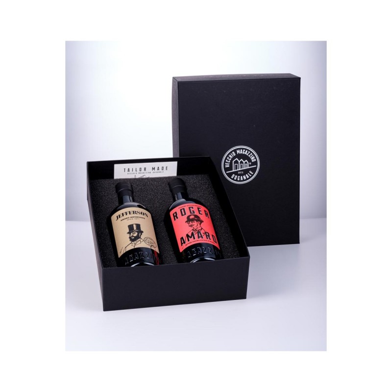 Questa elegante e pregiata confezione regalo contiene una bottiglia amaro Jefferson e una di amaro Roger, entrambe da 70 cl.